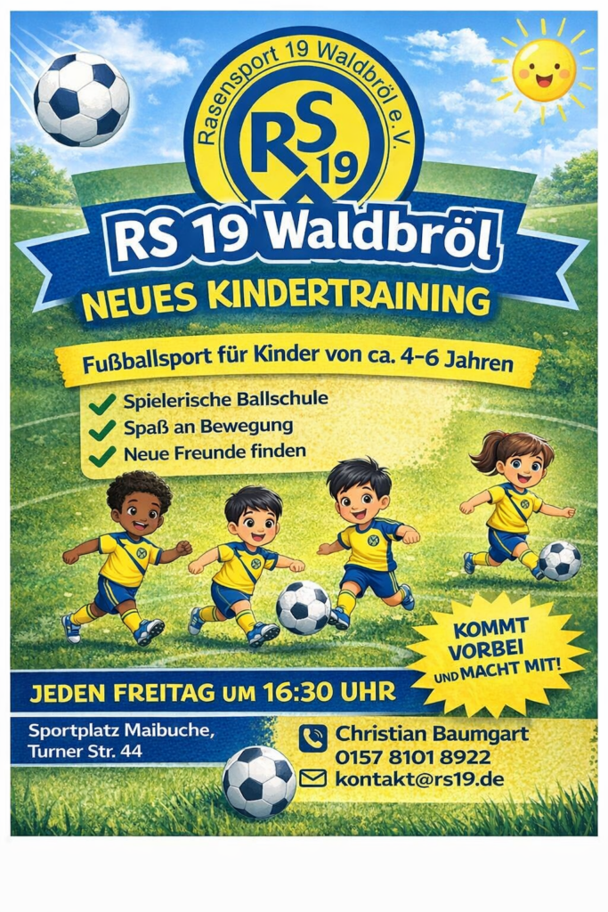 Der Rasensport 19 Waldbröl e.V. erweitert sein Jugendangebot und startet ab dem 17. April 2026 mit einem neuen Ballschul-Training für die jüngsten Fußballbegeisterten.